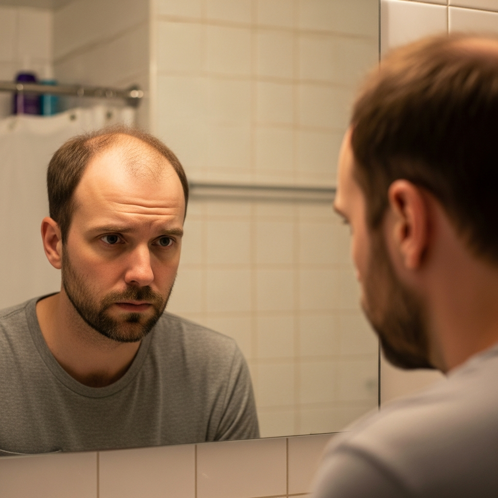 僕の場合、それは朝の洗面所だった。照明がやけに明るく感じて、ふと頭頂部が透けて見えたときのあの絶望感。